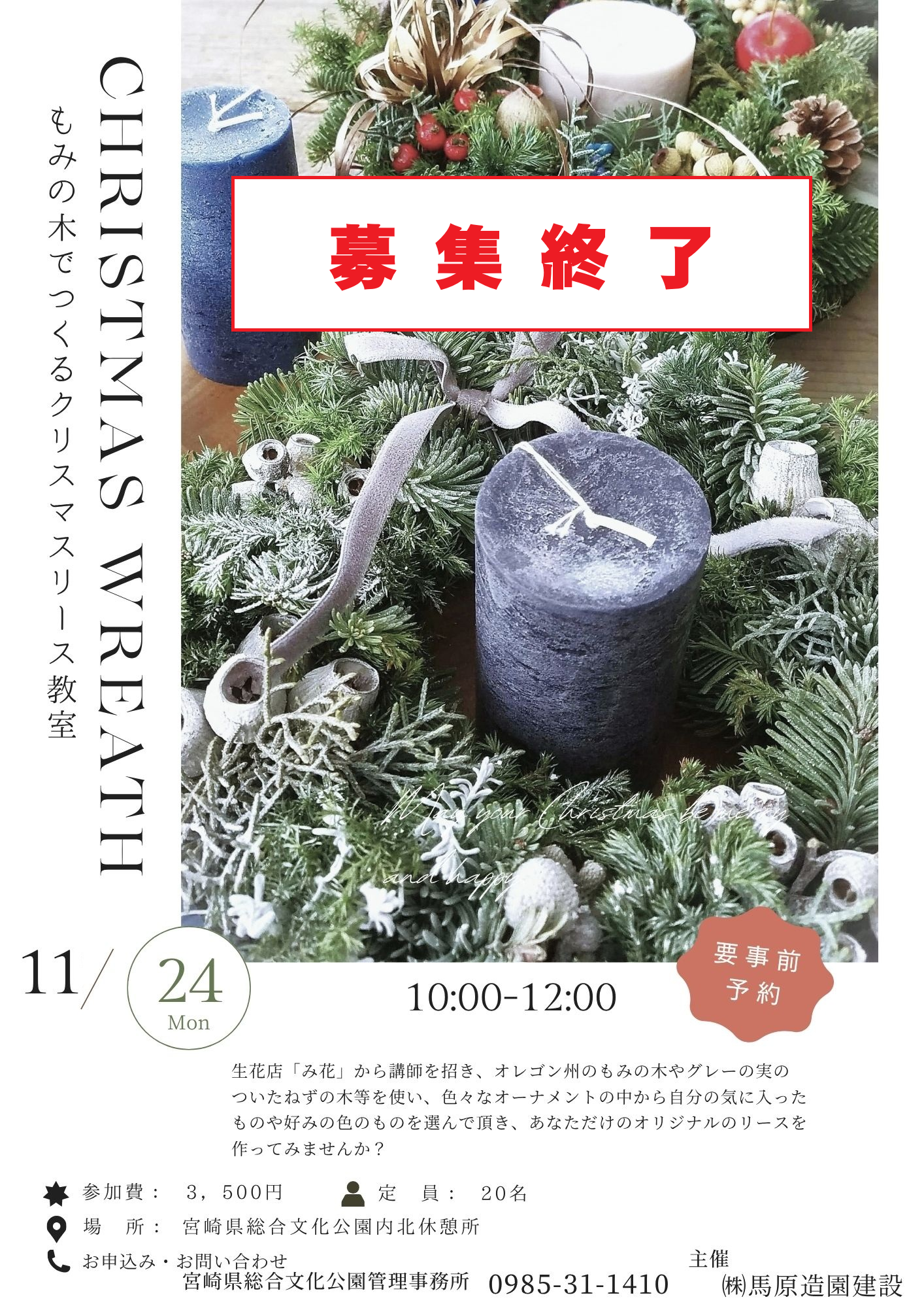 ✿『もみの木でつくるクリスマスリース教室』開催のお知らせ✿