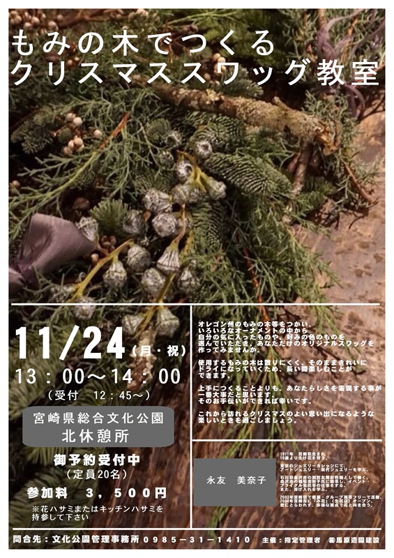 ✿『もみの木でつくるクリスマススワッグ教室』開催のお知らせ✿