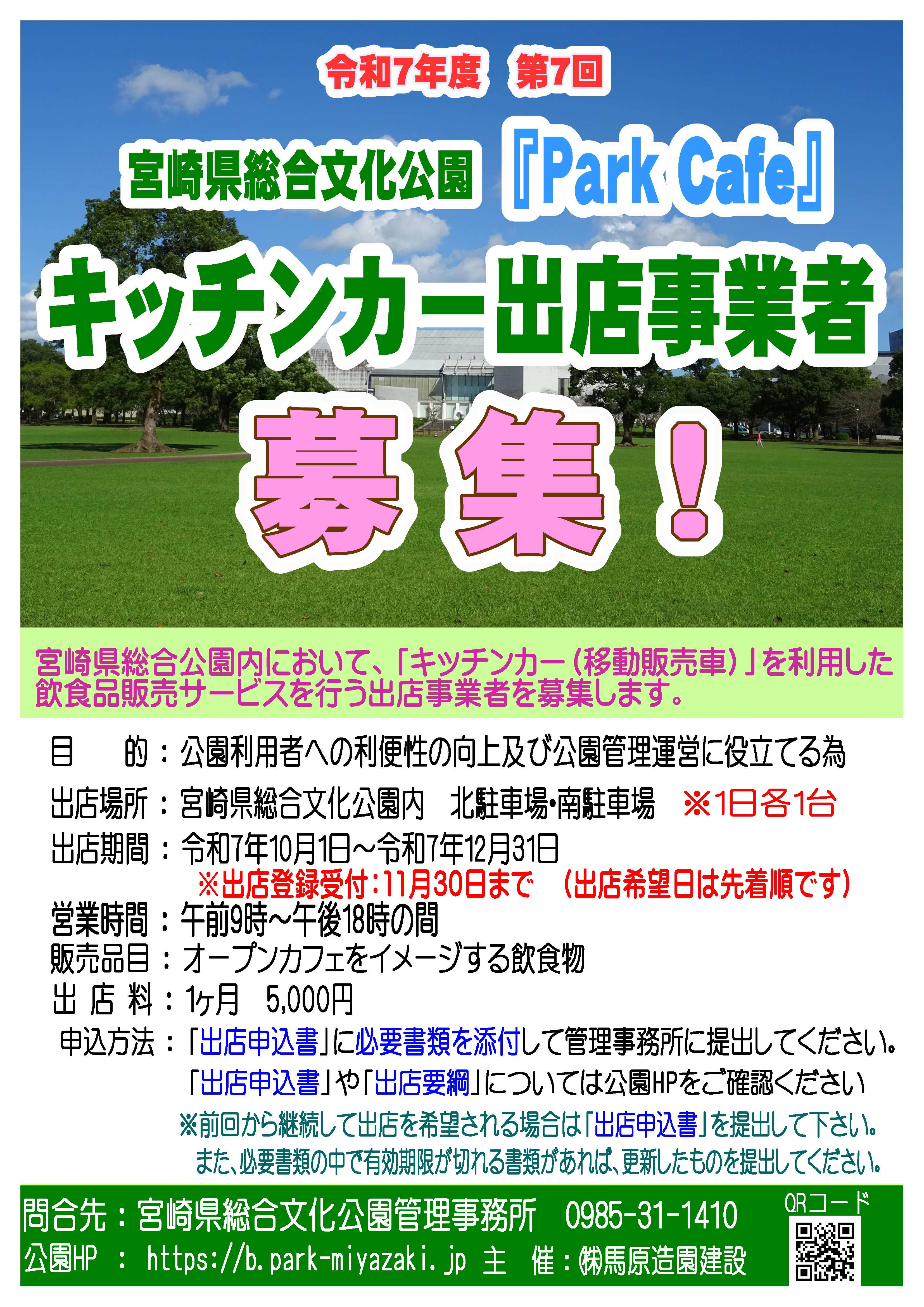 詳細は『宮崎県総合文化公園キッチンカー出店要綱』(PDF)をご確認ください。