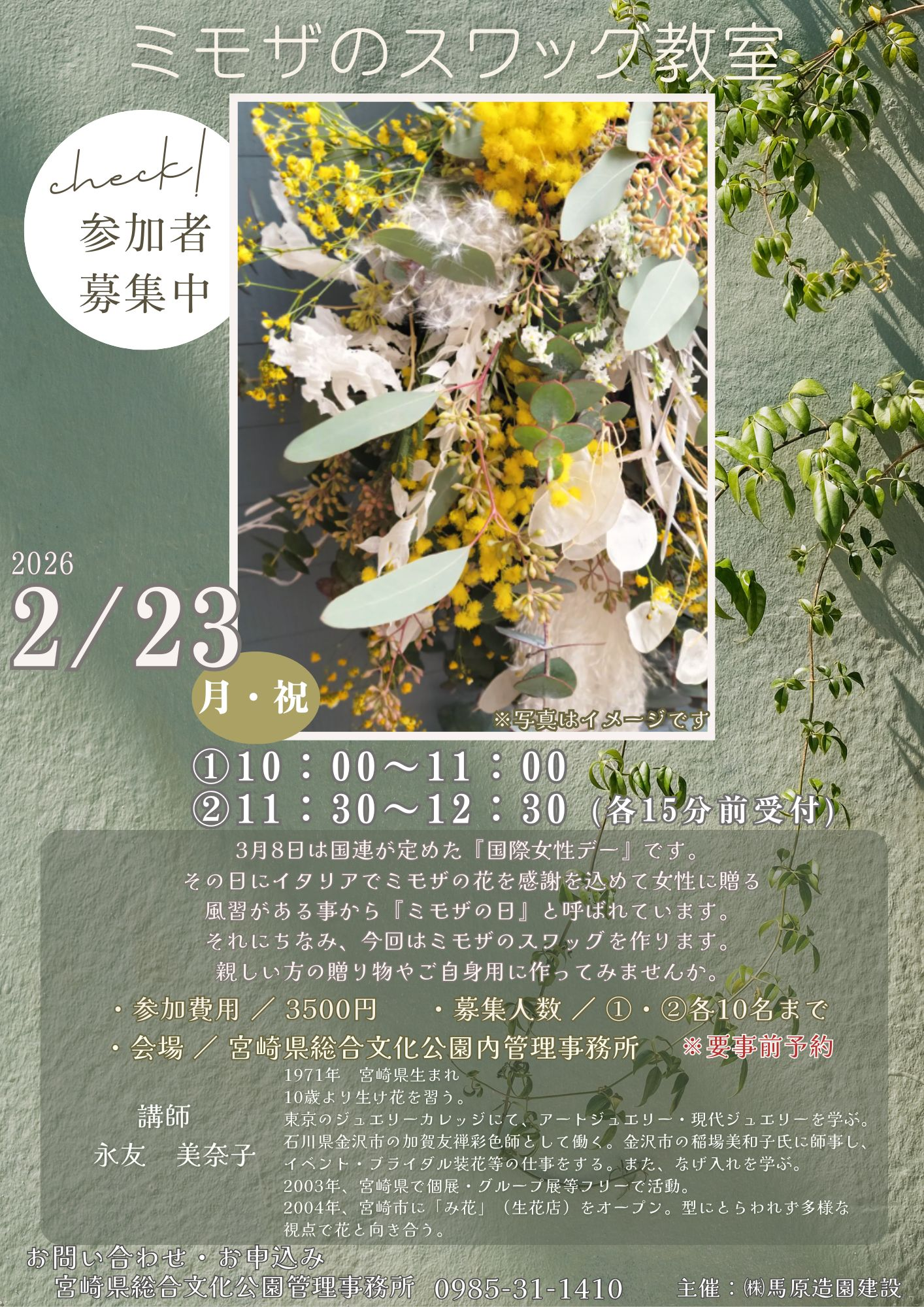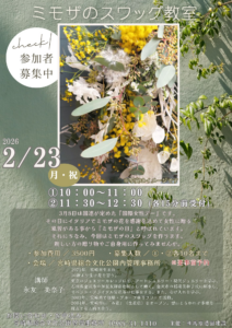 2月23日(月・祝)に『ミモザのスワッグ教室』を開催します。