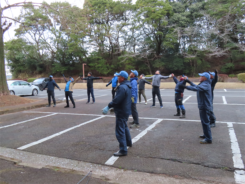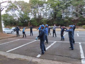 まず、全員でラジオ体操をした後、